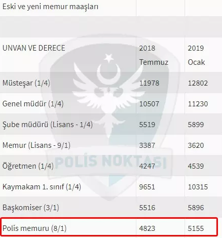 Aşağıdaki tabloda görüldüğü üzere 2023 polis maaşları 5155 TL’den başlıyor. Bu maaş birinci derece polis memuru olup, yüksek dereceye sahip olanların maaşlarının daha yüksek olduğunu bir kez daha belirtelim.