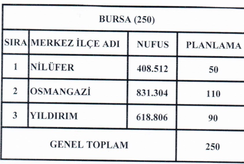 Bursa ili mahalle bekçisi alım kontenjanları: