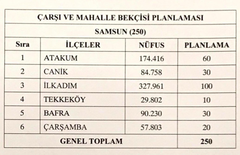 Samsun ilçelerine alınacak bekçi kontenjanları:
