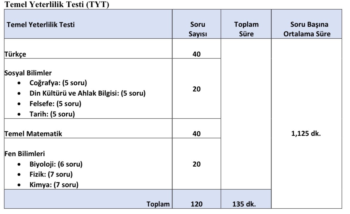 - TYT içeriğinde, temel matematik ve türkçe ile birlikte sosyal ve fen bilimleri kazanımlarının örtük olarak değil, açık ve müstakil bir şekilde yer almasına karar verilmiştir.